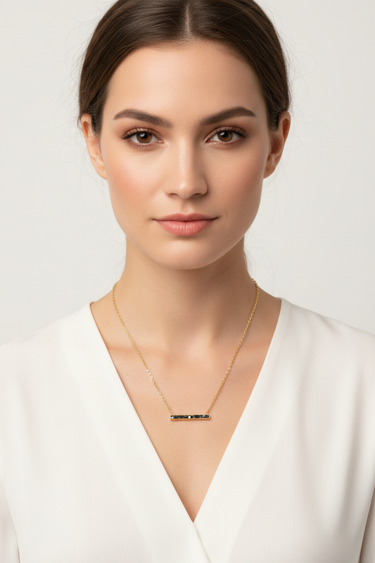 14 Karat Gold Plated Sterling Silver Diamond Chip Bar Necklace, Black Resin Setting, 19 Inch Chain with 2 Inch Extension, 0.50 CTW