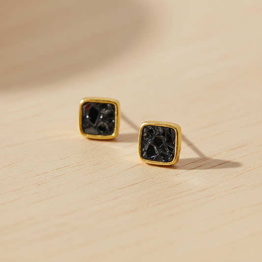 14 Karat Gold Plated Sterling Silver Black Diamond Chip Stud Earrings, 5mm, Natural Diamond in Black Resin