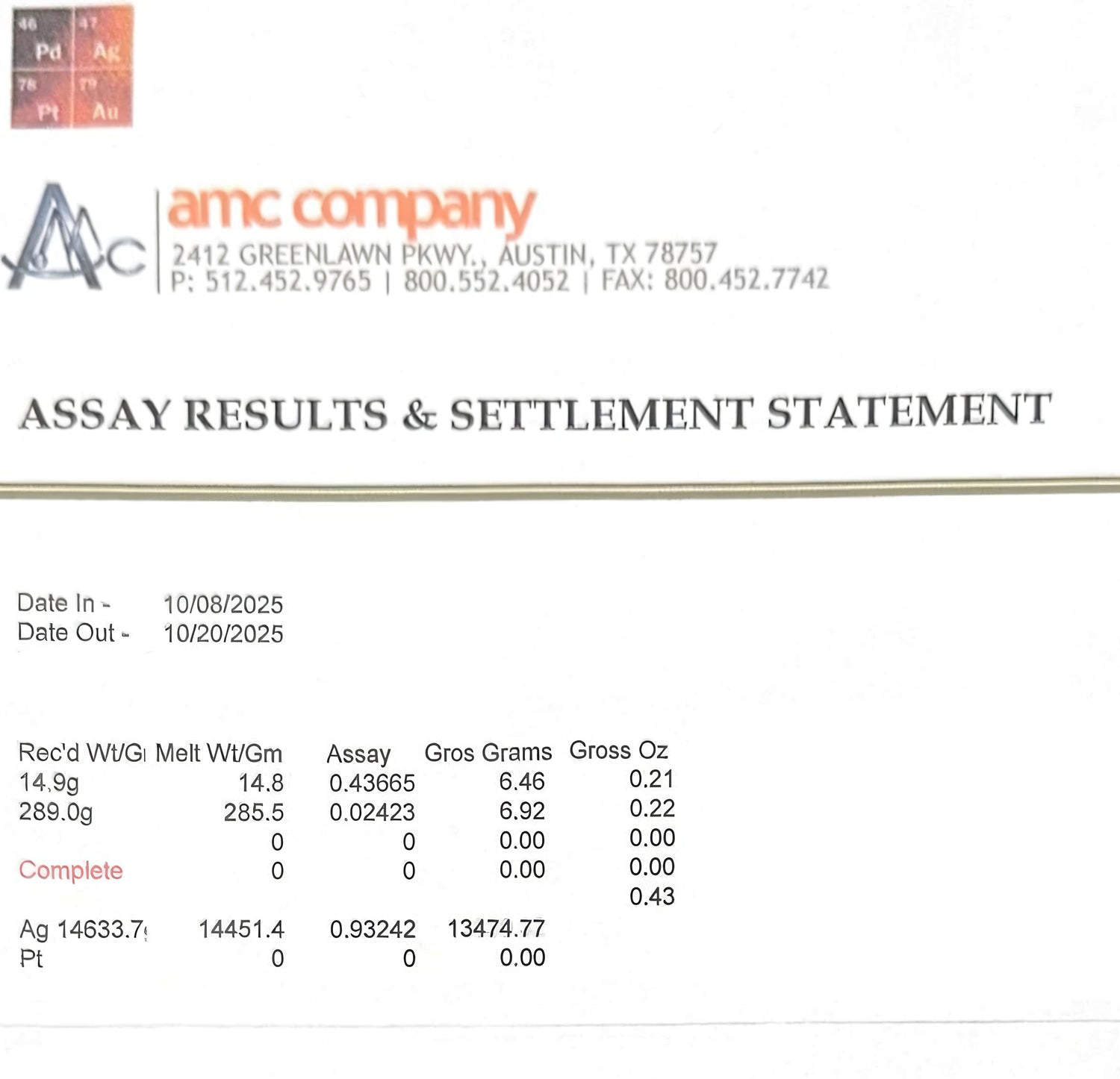 We conduct regular material audits and batch testing to ensure consistent excellence. Our most recent independent assay was performed in late 2025.