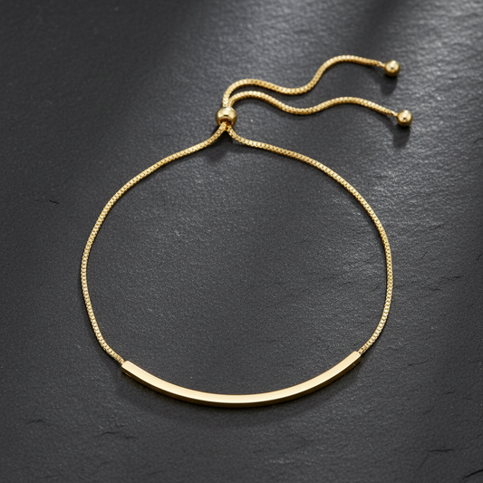 14 Karat Gold Plated Sterling Silver Bar Friendship Bolo Bracelet, Adjustable Box Chain, 9.25 Inch, 2mm x 47mm Polished Bar