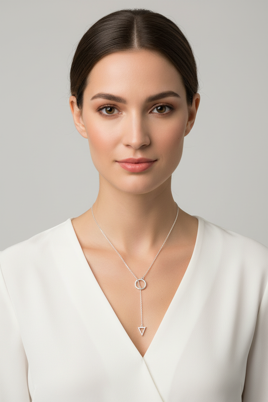 Lariat Necklace - Sterling Silver Y-Shaped Geometric Design