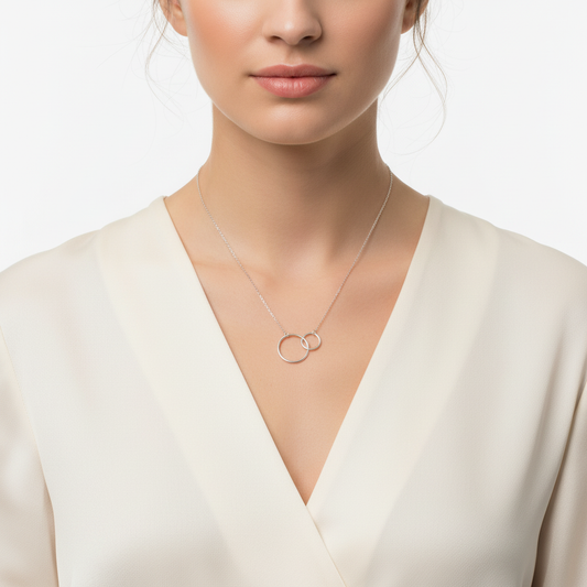 Sterling Silver Double Circle Link Chain Necklace, Rhodium Plated, 16 Inch with 2 Inch Extension, 10mm and 16mm Circles