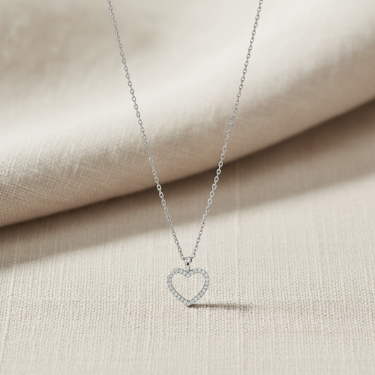 Heart Necklace - Sterling Silver Rhodium Plated CZ Pendant
