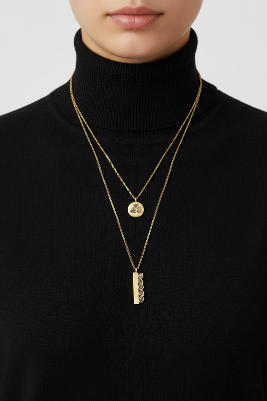 14 Karat Gold Plated Sterling Silver Double Strand Necklace with Polki Diamond Pendant, 20-24 Inch Chain, 0.40 CTW Natural Uncut Stones