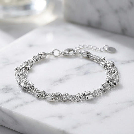 Stella Layers - Italian Rhodium Plated 5-Strand Satellite Bead Bracelet | 6.5" + 1" Extender