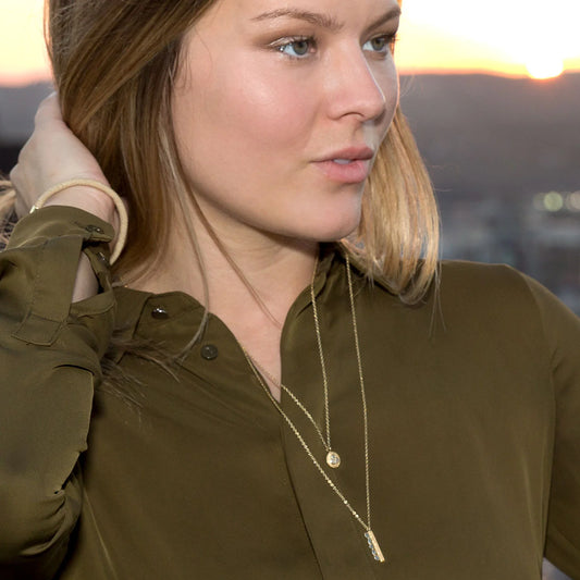 14 Karat Gold Plated Sterling Silver Diamond Chip Pendant Necklace, Natural Resin Setting, 16 Inch Chain with 2 Inch Extender