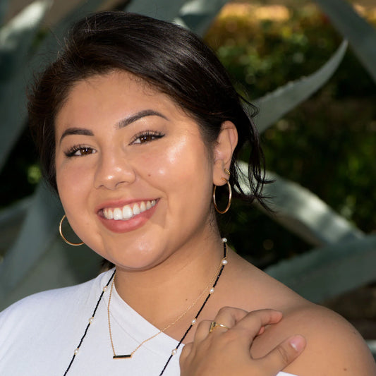 14 Karat Gold Plated Sterling Silver Diamond Chip Bar Necklace, Black Resin Setting, 19 Inch Chain with 2 Inch Extension, 0.50 CTW