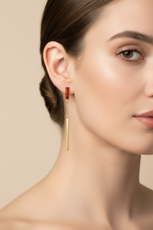 Baltic Amber Bar Earrings 24K Gold Plated 925 Sterling Silver Poland 60mm
