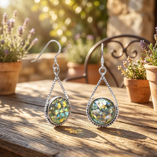 Authentic Roman Glass Drop Earrings 925 Sterling Silver 13mm w/ Certificate