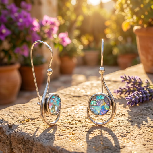 Authentic Roman Glass Hook Earrings 925 Sterling Silver 8mm w/ Certificate