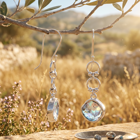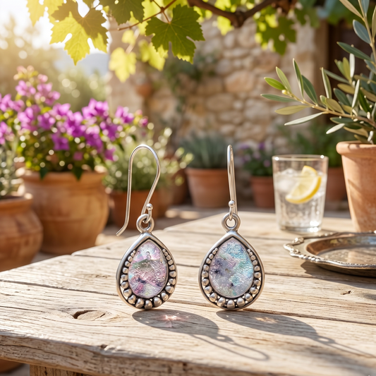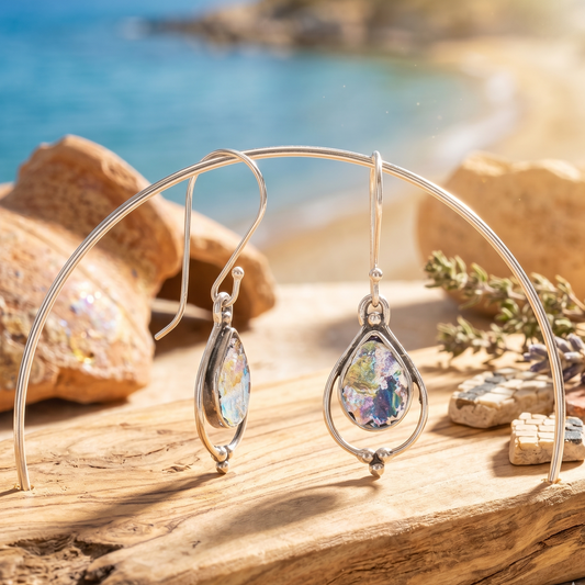 Authentic Roman Glass Pear Drop Earrings 925 Sterling Silver 37mm w/ Certificate
