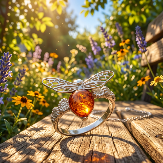 Baltic Amber Honey Bee Flower Ring 925 Sterling Silver 9x7.5mm Sizes 6-9
