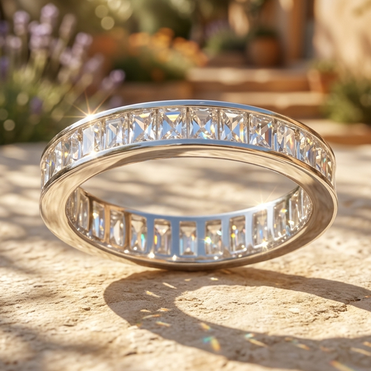 Baguette CZ Eternity Band Rhodium 925 Sterling Silver 4mm Wedding Sizes 5-10