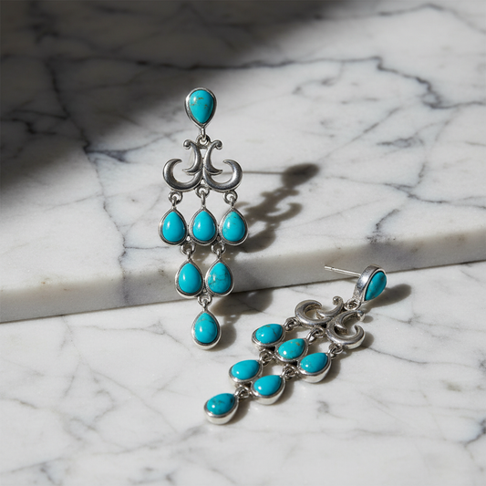 Azure Cascade Earrings - Sterling Silver Chandelier with Turquoise Teardrops