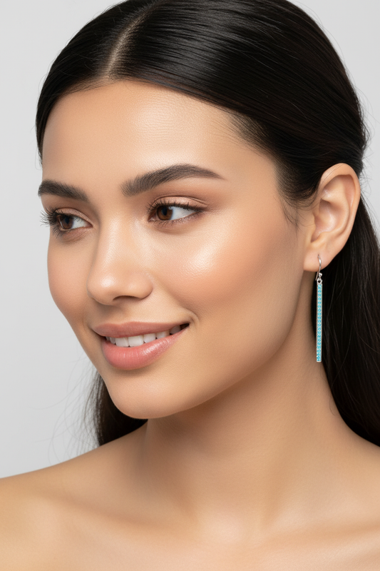 Azure Skyline Earrings - Rhodium Sterling Silver Bar Drops with Turquoise CZ