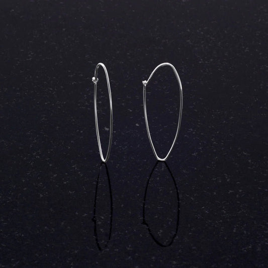 Sterling Silver Thin Oval Wire Hoop Earrings, 1.75 Inch Length, 0.5mm Wide