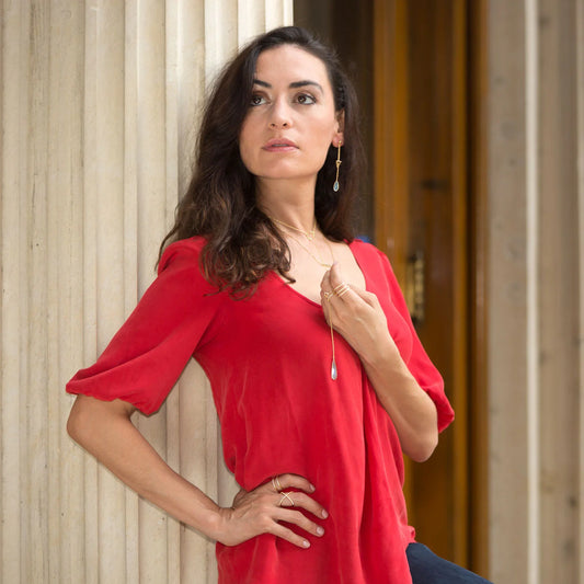 14 Karat Gold Plated Sterling Silver Lariat Necklace with Chalcedony Drop, Y-Shaped, 24 Inches, 7.5x29mm Gemstone