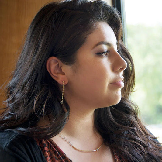 • 14K Gold Plated Sterling Silver Drop Earrings with Labradorite Beads, 2 Inch Length, 5.33mm Round End