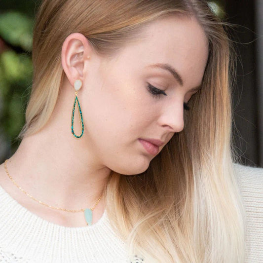 Geometric Multi-Stone Drop Earrings - Sterling Silver with Labradorite Moonstone Onyx Quartz