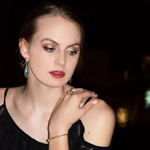14K Gold Plated Sterling Silver Ring with Labradorite, Turquoise, Moonstone, Blue Glass Cluster, Multi Stone Design, Sizes 7-10