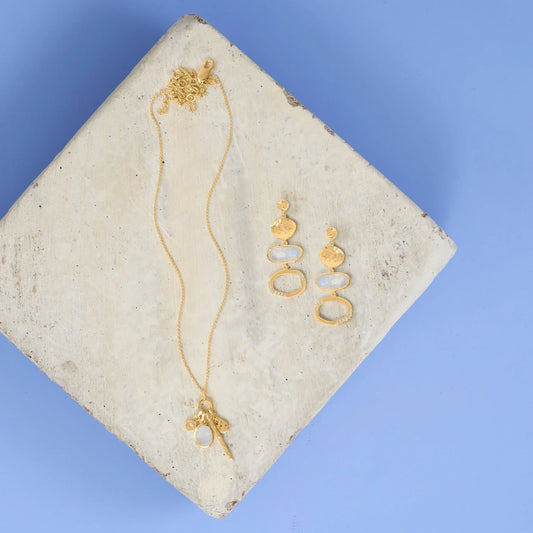 Multi-Stone Necklace - Sterling Silver Moonstone Pearl Chalcedony Pendant