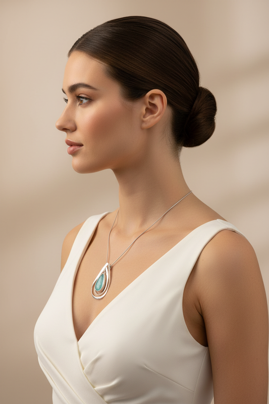 Ancient Roman Glass Necklace - Sterling Silver Cut Out Pear Pendant