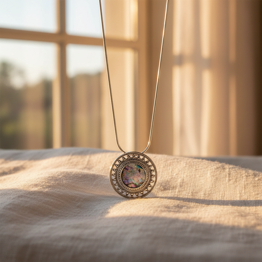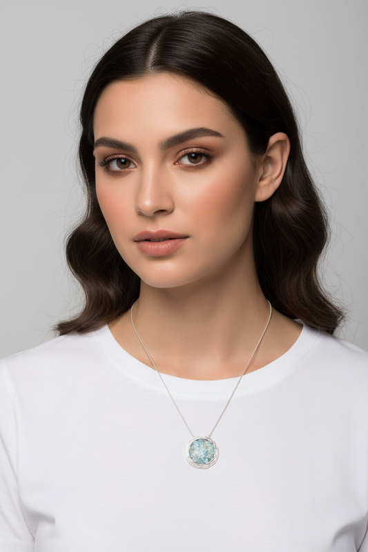 Ancient Roman Glass Necklace - Sterling Silver Abstract Circle Pendant