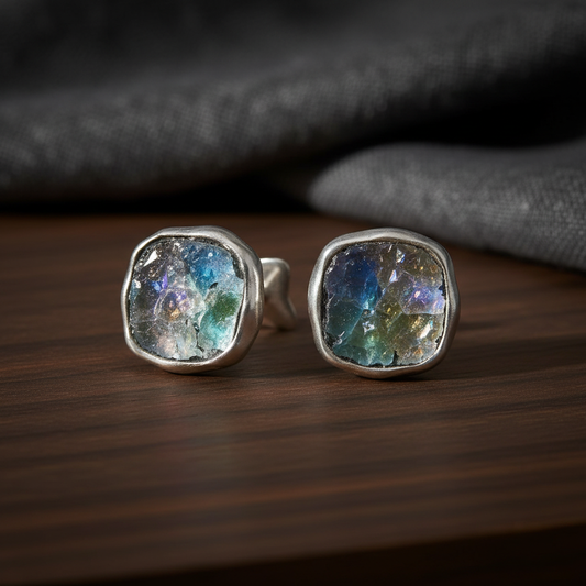 Sterling Silver Ancient Roman Glass Cuff Links, 16mm Square, Hammered Design with Certificate of Authenticity