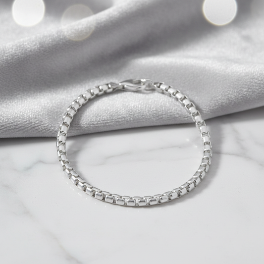 Classic Elegance Bracelet - Rounded Box Chain Sterling Silver 8.5"