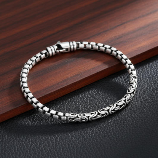 Artisan Fusion Bracelet - Black Rhodium Box & Byzantine Chain Sterling Silver