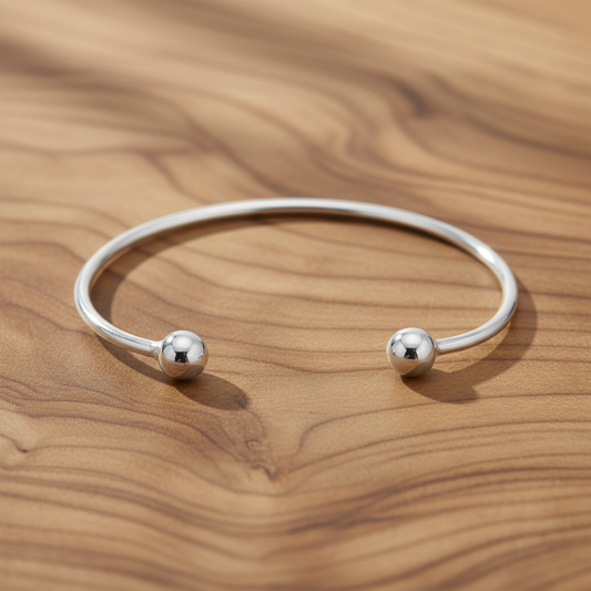 Sterling Silver Men's Cuff Bracelet, 2mm Wide with 8.5mm Ball Ends, .925 Silver