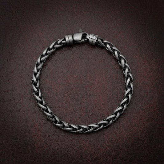 Sophisticated Edge Bracelet - Black Rhodium Wheat Chain Sterling Silver