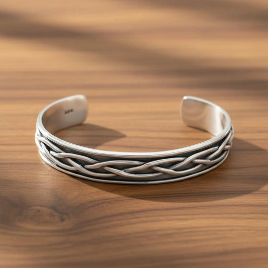 Braided Cuff Bracelet - Sterling Silver Oxidized Handmade Mexico