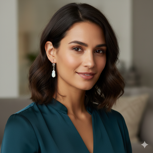 Sterling Silver Rhodium Plated Australian Opal, White Topaz Drop Earrings, 5x7mm Stone, 28mm Length
