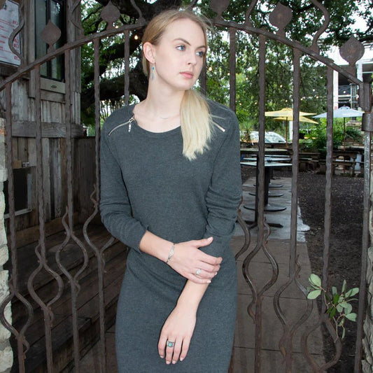 Turquoise Stacking Ring - Sterling Silver Rhodium Plated Dainty Design