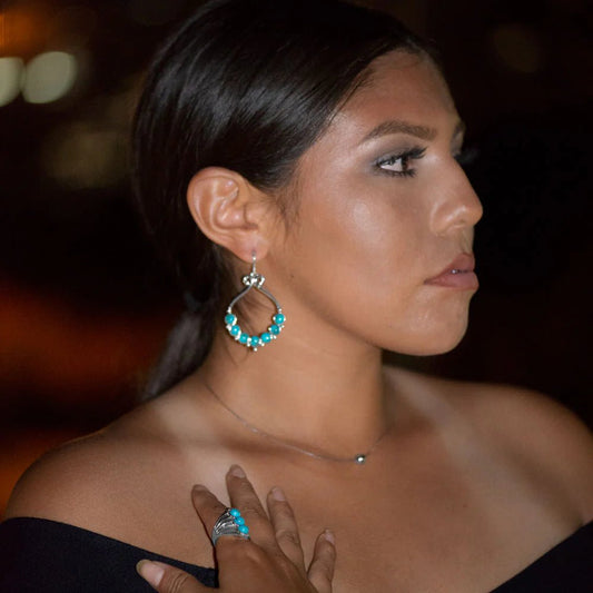 Turquoise Flower Ring - Sterling Silver Southwest Style Statement