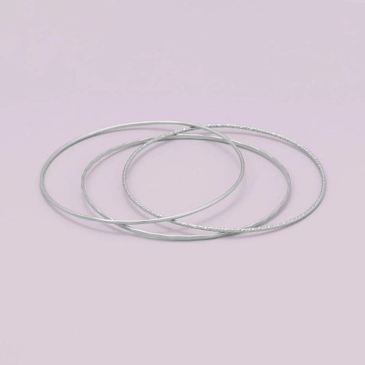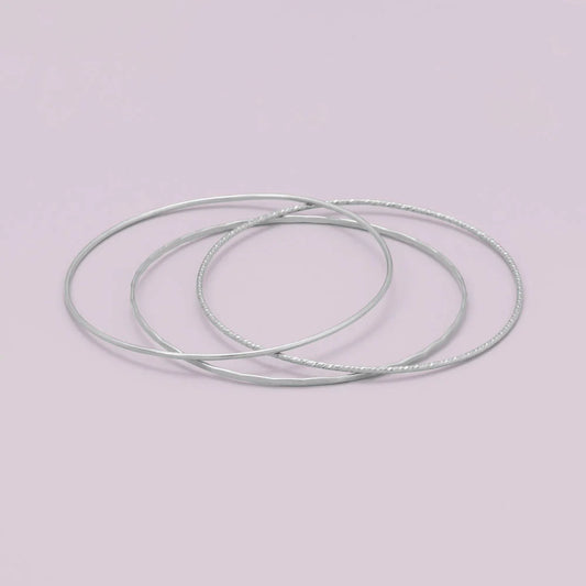 Flat Bangle Bracelet - Sterling Silver Stackable Minimalist Design