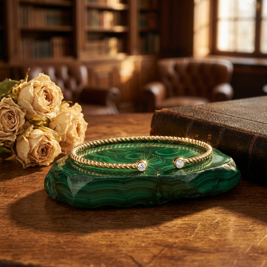 Luxe Twisted Cable Cuff - 14K Gold Plated Sterling Silver with CZ