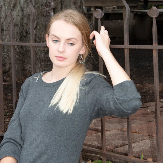 Sterling Silver Celtic Knot Pear Outline French Wire Earrings, Oxidized, 41.7mm Length