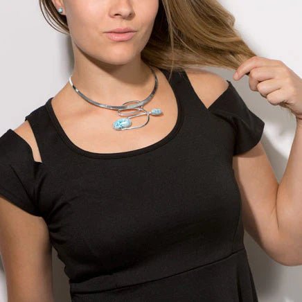Sterling Silver Marquise Larimar French Wire Earrings, Rhodium Plated, 6mm x 25mm Stone, 1.75 Inch Drop