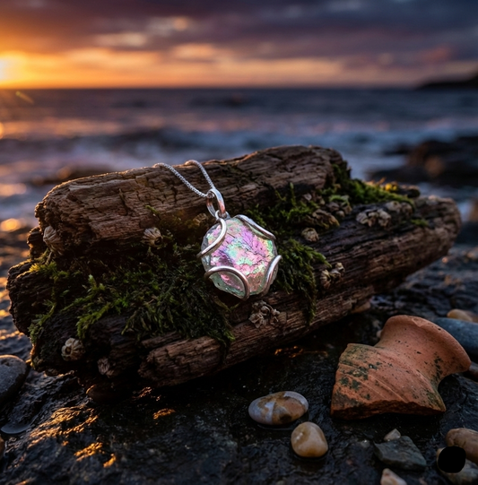 Ancient Roman Glass Necklace - Sterling Silver Oxidized Wire Set Pendant