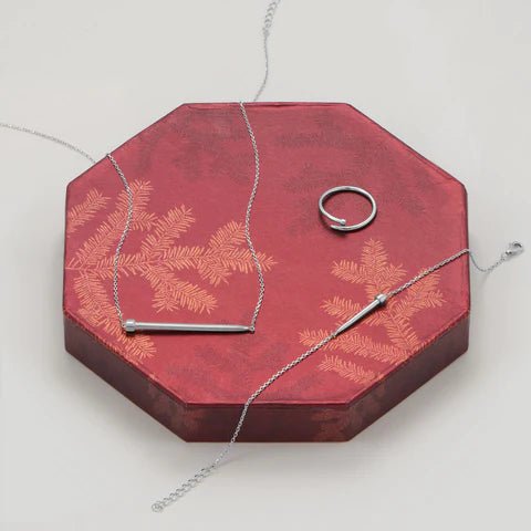 Sterling Silver Oxidized Rosemary Sprig Three Ring Set, Botanical Design, Sizes 6-9, 2.6-4mm Wide