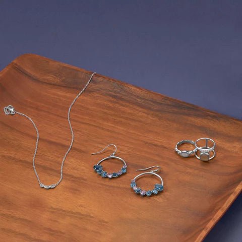 Sterling Silver Woven Design Ring with Sodalite Stone, Rhodium Plated, 4mm Band Width, Multiple Sizes