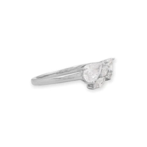 Sterling Silver Rhodium Plated CZ Cluster Ring, Pear and Marquise Cut, Sizes 6-9