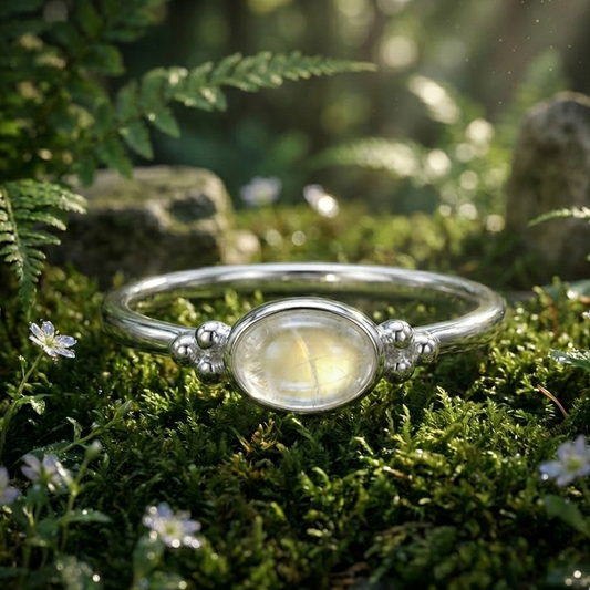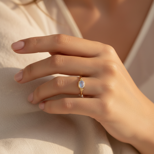 Rainbow Moonstone Ring - Sterling Silver Dainty Oval Statement Jewelry