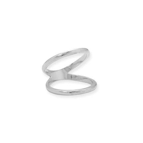 Sterling Silver Rhodium Plated Double Band Knuckle Ring, 2mm Width, Size 5-10, Midi Ring Design