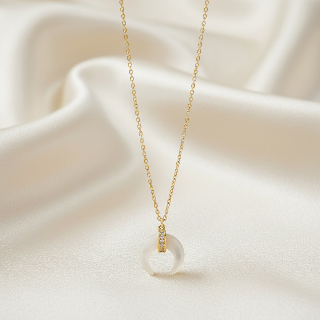 At Kai Jewelry Store, we celebrate celestial beauty. This mother of pearl crescent necklace features lustrous gold plating with iridescent shell - creating a piece that strikes the perfect balance between sophisticated elegance and everyday wearability, ideal for both special occasions and daily wear.