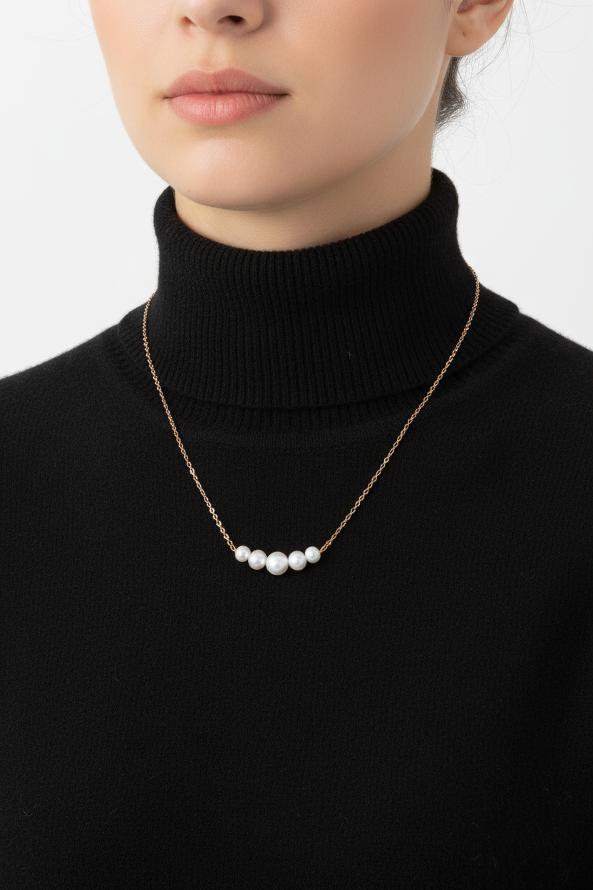 PEARL DETAILS: Five near-round cultured freshwater pearls measuring approximately 5.5mm, 6.5mm, and 7.5mm create a stunning gradient effect