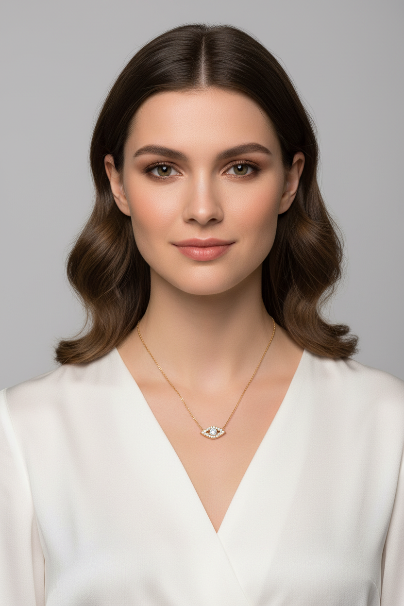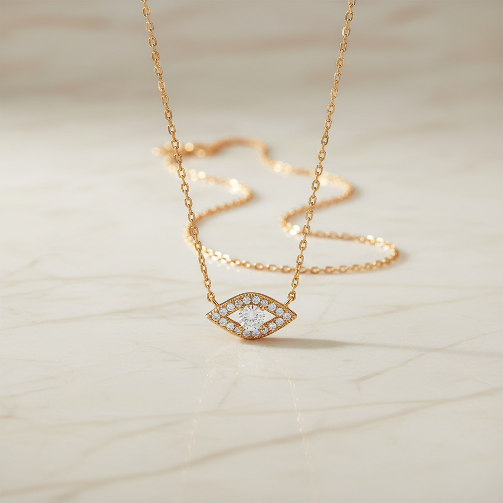 DESIGN: Elegant evil eye pendant necklace crafted in sterling silver with 14K gold plating for a luxurious finish