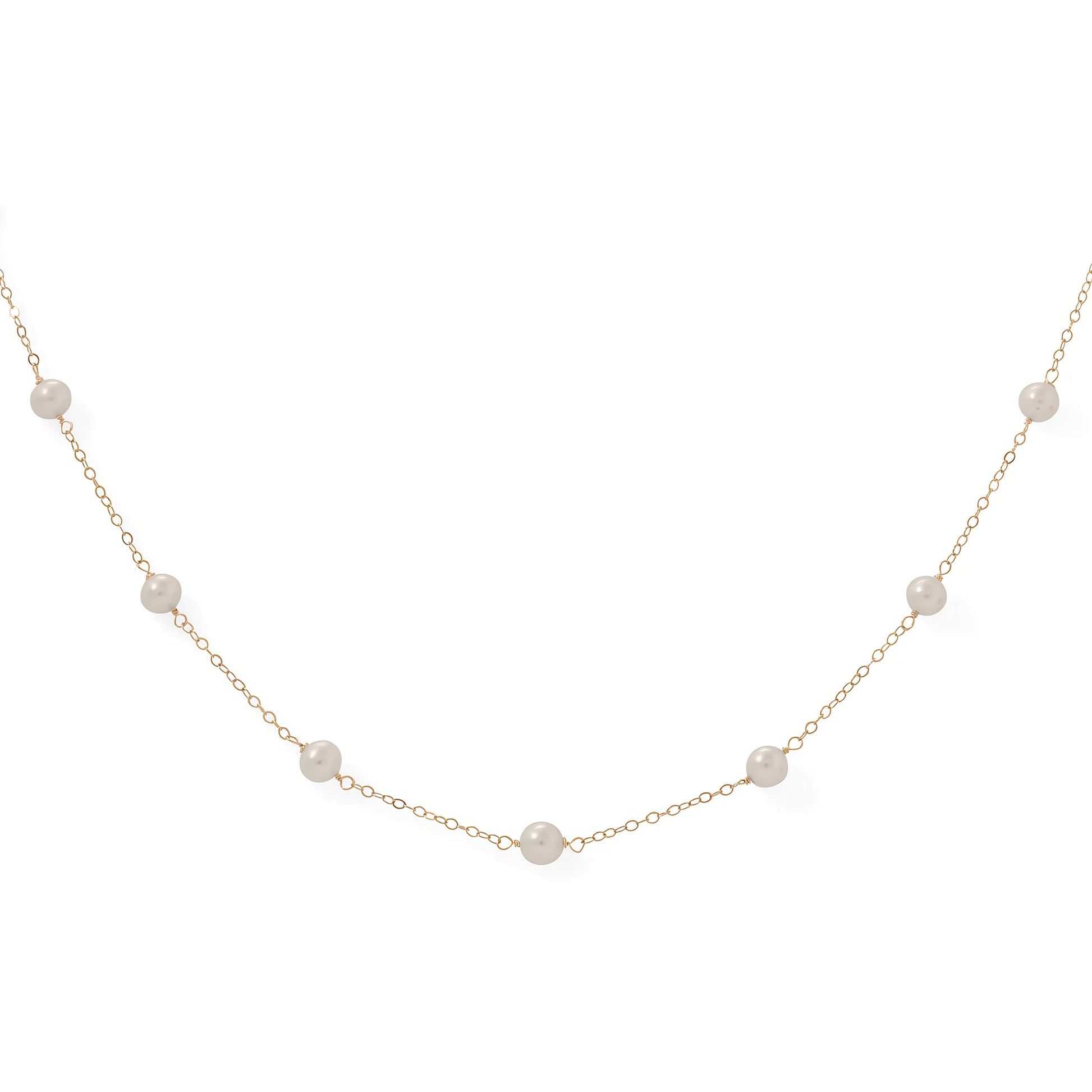 14/20 Gold Filled Freshwater Pearl Necklace, 16 Inch Chain, 5.5-6mm Round Cultured Pearls, 9 Pearl Strand